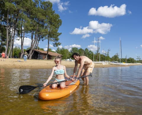 Slow down the pace in Biscarrosse. Our campsite with spa, nestled on the shores of the Parentis-en-Born lake, offers an exceptional setting for a restorative break. Relax on the landscaped beach, take an early-morning walk in the forest, watch the sun set over the lake or take a pedal-boat ride: enjoy the ever-present nature at your own pace, with family activities at the campsite or some well-deserved solo time.